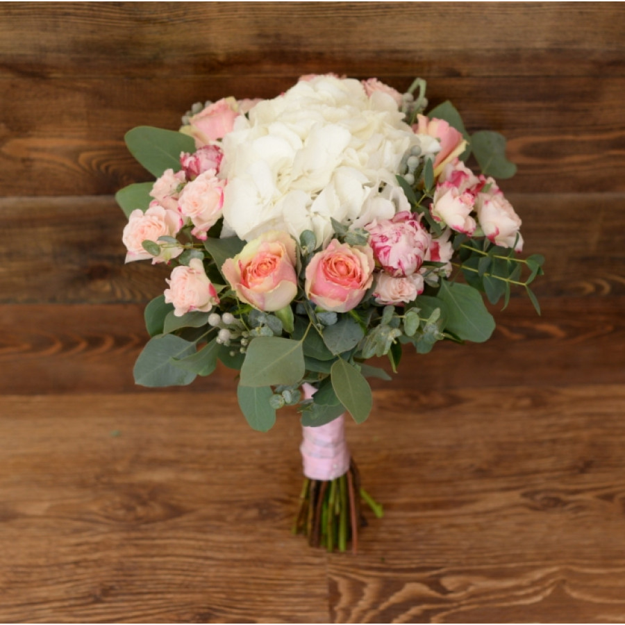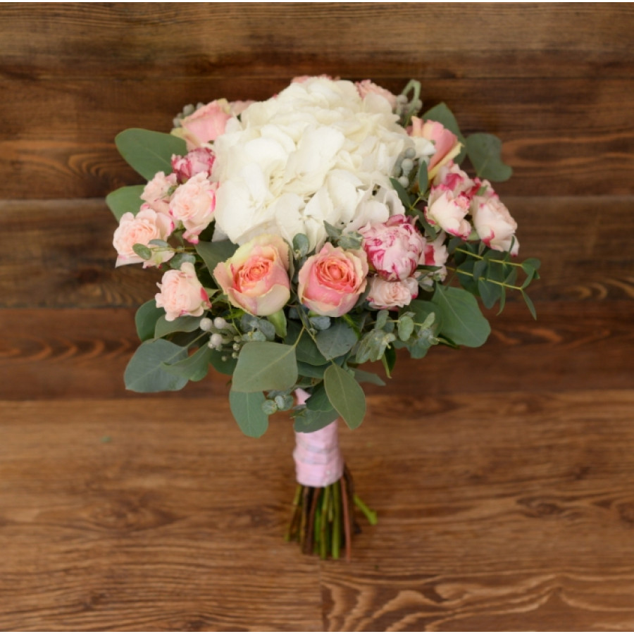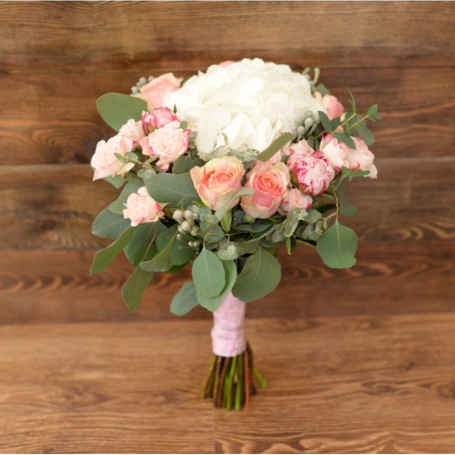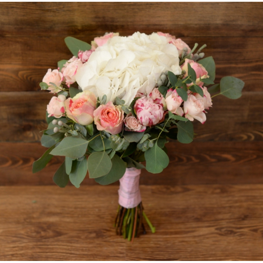 Подбираете изысканный презент близкому человеку, который знает толк в эстетичности и изысканности, роскоши и стиле? Тогда данный букет – это именно то, что требуется. Элегантная гортензия, отборные сорта розы, пышные бутоны пионов, веточки брунии и только срезанные листочки эвкалипта станут не только шикарным дополнением к основному сюрпризу, но и вполне могут выступить самостоятельным подарком.